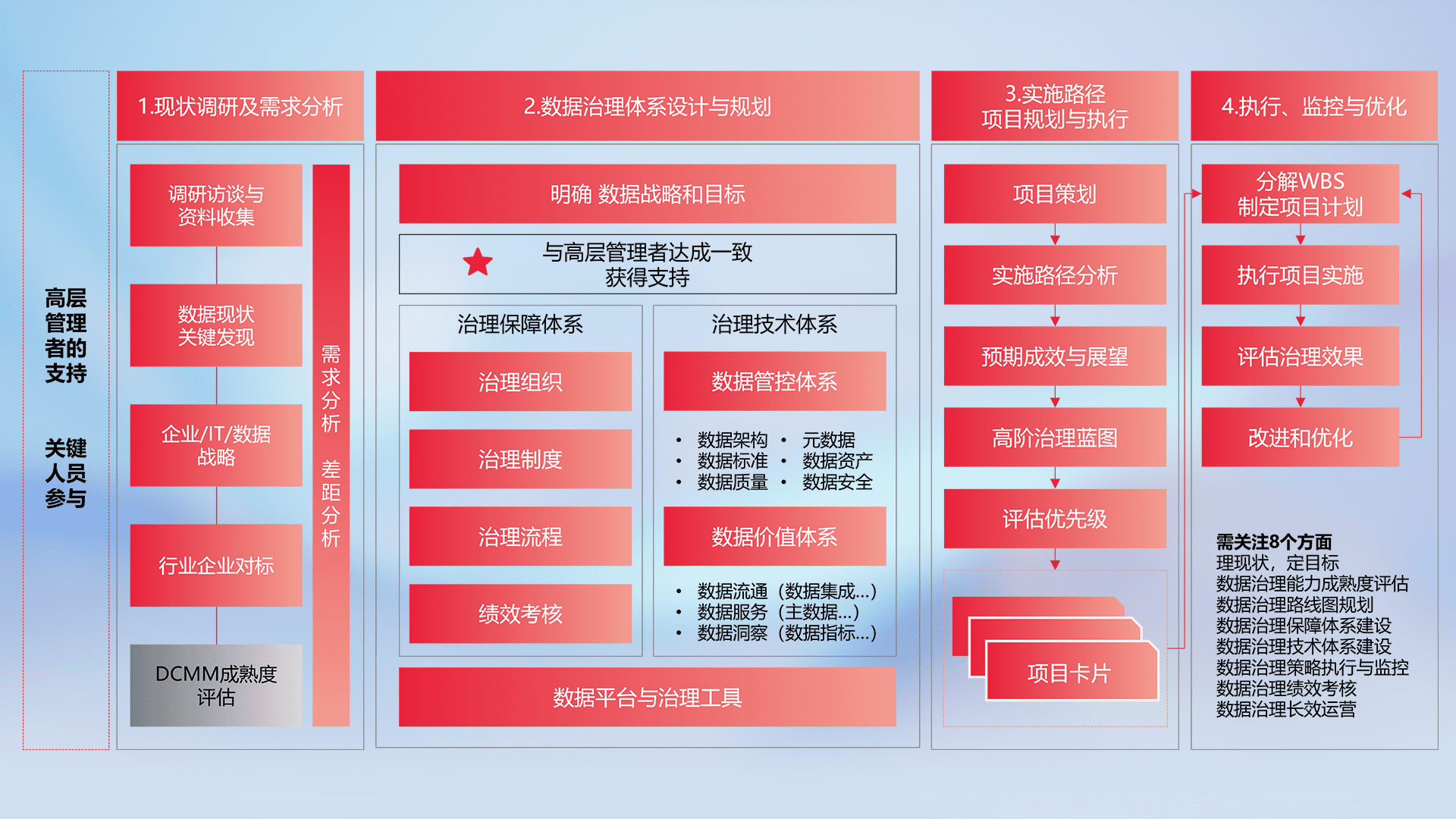 制定并执行统一的数据标准,,规范数据定义和格式,,消除冗余和不一致性,,,实现跨部门和跨系统的数据一致性,,,为企业提供标准化的数据基础。。。。